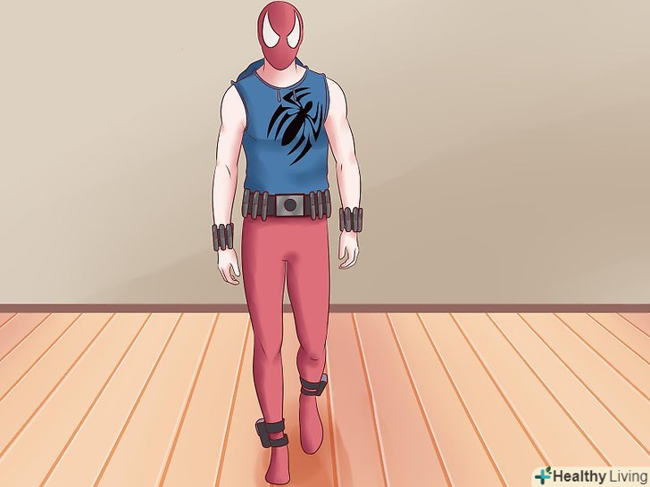 Відтворіть один з домашніх нарядів героя, щоб уникнути необхідності що-небудь різати і кроїти.більшість ранніх костюмів Людини-павука (на початковому етапі його боротьби зі злочинністю) складалися зі звичайного одягу та інших підручних засобів. Якщо ви не в захваті від ідеї знищити власний гардероб, подумайте про використання такого ж підходу. Додатковим бонусом стане те, що ваш костюм буде виділятися на тлі звичайних костюмів Людини-павука, які можна побачити на різних косплей-фестивалях.[20]- «неофіційний борець зі злочинністю "з фільму" Людина-павук: Повернення додому " носив тільки синю водолазку, синє трико, червону безрукавку з капюшоном, червоні кеди, рукавички без пальців і червону балаклаву з захисними окулярами для зварювання.