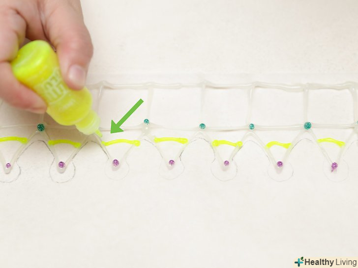 Прикрасьте тасьму.прикрасьте корону так, як вам подобається. При цьому бажано виходити з початкового орнаменту і структури мережив. Ось кілька ідей:- Додайте до корони блискітки. Можна нанести на корону смуги канцелярського білого клею, а потім присипати їх блискітками. Замість блискіток можна використовувати блискучий клей.