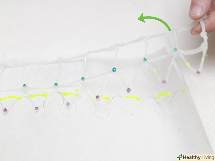 Дайте клею висохнути і потім зніміть його з пергаментного паперу.більшість видів гарячого клею висихають досить швидко, залежно від того, наскільки прохолодно в приміщенні. При застиганні клей може потьмяніти або залишитися прозорим.