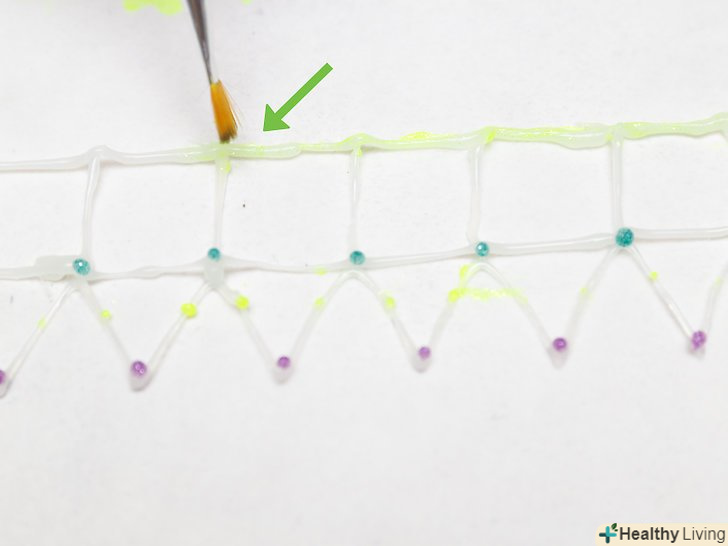 Прикрасьте корону і почекайте, поки вона висохне.покладіть корону назад на пергаментний папір і прикрасьте її. Можна розмалювати корону, покрити її блискітками або навіть приклеїти до неї кілька штучних дорогоцінних каменів. Для прикраси крижаної корони вибирайте відповідні кольори: блакитний, бірюзовий, білий і сріблястий. Нижче наведено кілька ідей щодо того, як можна прикрасити корону:- Щоб надати короні напівпрозорий вигляд, пофарбуйте її незмивними маркерами. Не використовуйте гелеві ручки, так як вони дадуть непрозорий колір.