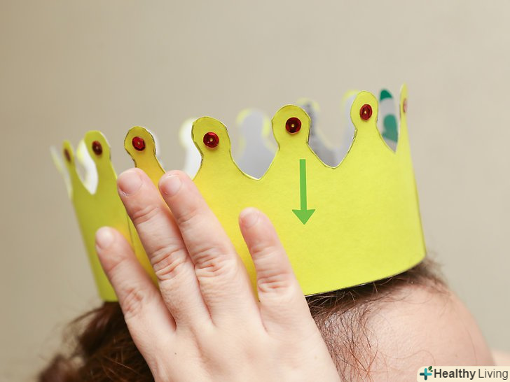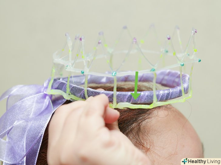Одягніть корону.хоча ви використовували при виготовленні корони головну пов'язку, її не слід носити так само, як цю пов'язку. Замість цього просто покладіть корону на голову, як вінок.