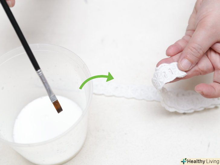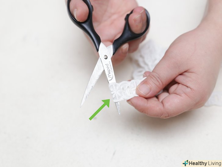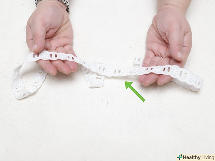 Знайдіть мереживну тасьму.виберіть вишиту або в'язану тасьму з зубчастим або зигзагоподібним краєм. Цей край буде верхньою кромкою вашої корони. Не беріть тасьму з занадто тонкої і повітряної тканини, інакше корона буде м'якою і нестійкою.- Не хвилюйтеся, якщо вам попадеться тасьма не того кольору, який ви хотіли б. Вона буде потрібно лише для форми корони, і ви зможете перефарбувати її.