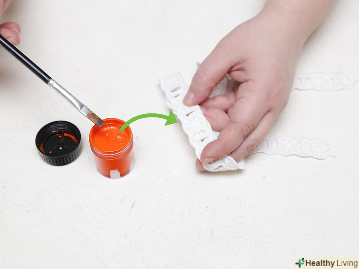 Подумайте про те, щоб пофарбувати тасьму.[1] якщо ви хочете мати корону іншого кольору, можна пофарбувати тканину акриловою або аерозольною фарбою. Покладіть тасьму на аркуш паперу і пофарбуйте її. Коли фарба висохне, переверніть тасьму і пофарбуйте другу сторону. Більшість акрилових і аерозольних фарб висихають протягом 20 хвилин, але для деяких може знадобитися аж до двох годин. Як правило, необхідний час вказують на етикетці.- Якщо ви використовуєте акрилову фарбу, наносите її за допомогою щетинної або губчастої кисті. Слідкуйте, щоб фарба потрапила в усі поглиблення і щілини.
