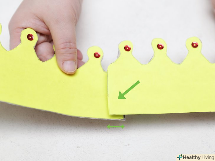 Накладіть один кінець корони на інший, так щоб вони перетиналися на 2,5 сантиметра, і скріпіть їх разом.це можна зробити за допомогою гарячого клею, клейових точок, універсального клею і навіть степлера. Якщо ви використовуєте універсальний клей, притисніть краї один до одного за допомогою скріпки або затиску для паперів і почекайте, поки клей висохне.