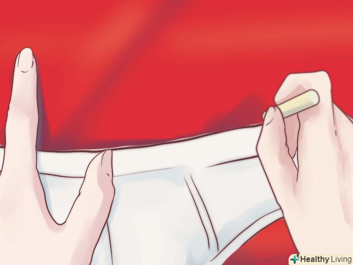 Покладіть залишився ярд червоної тканини на робочий стіл. Обведіть навколо трусів білою крейдою.