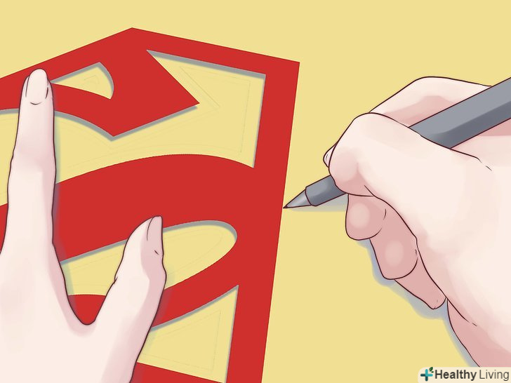 Обведіть кожен шаблон на шматку повсті.використовуйте змивається олівець або крейда для тканини, щоб відзначити три окремі фігури. Виріжте червоний алмаз, менший жовтий діамант і червону " S " на всіх трьох шматках повсті.
