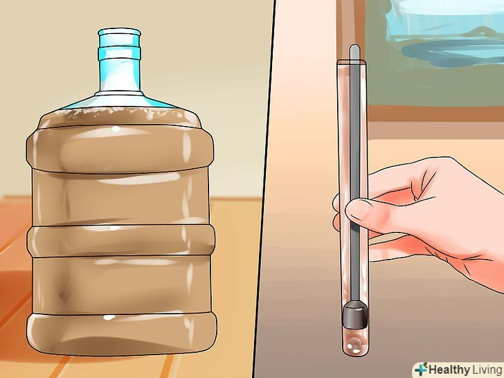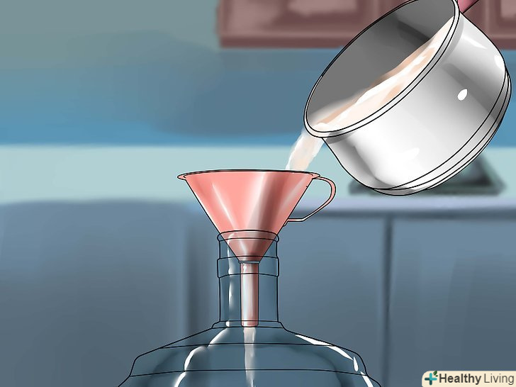 Перемістіть ваше сусло в бродильний апарат.для цього ви можете використовувати воронку. Багато домашніх пивоварів використовують скляні пляшки, які є звичайними великими скляними пляшками. Часто ви можете купити їх разом з повітряною пробкою (яка, безумовно, вам знадобиться).[6]- Ви також можете і самі зробити повітряну пробку. Для цього просвердлите отвір в пробці або кришці від бутлі, яке відповідає розміру хірургічної трубки (яка вам знадобиться для даного методу). Після цього запустіть цю трубку в отвір, залишаючи її інший кінець звисати в стакан або банку з водою.[7]
