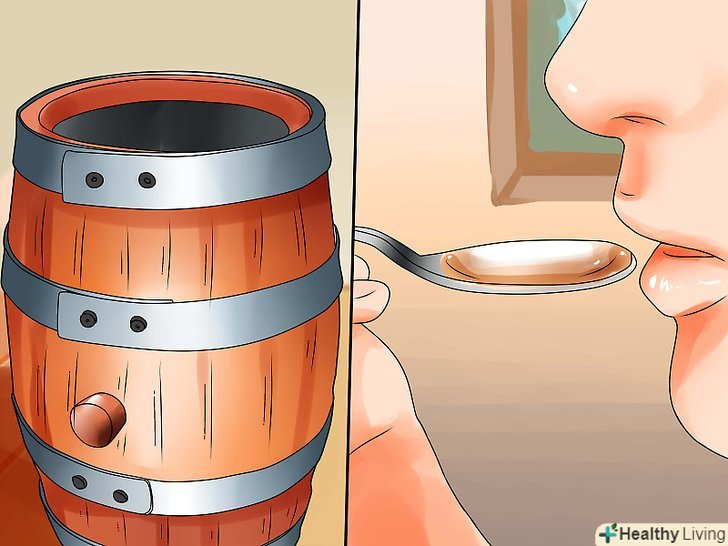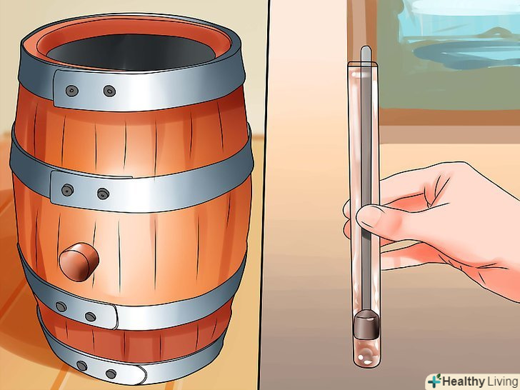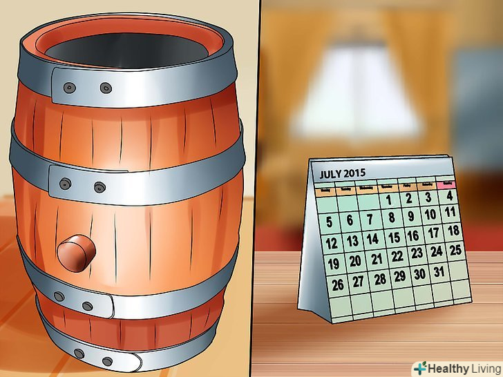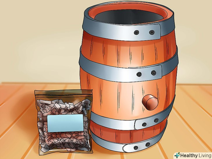 Виберіть процес витримки.більшість віскі витримуються в дубових бочках. Однак якщо у вас немає таких під рукою, ви можете додати дубові тріски в віскі і розлити його в іншу ємність. Витримуючи віскі, ви додасте йому приємний смак, який ми всі любимо. Також ви можете купити просмолені дубові бочки і дубові тріски в Інтернеті.[16]- Якщо ви вирішите витримувати віскі в банку або іншій закритій тарі, тоді потрібно буде регулярно відкривати ємність, щоб дати випаруватися спиртовим парам (які також відомі як "частка ангелів"). Відкривайте тару як мінімум раз на тиждень.