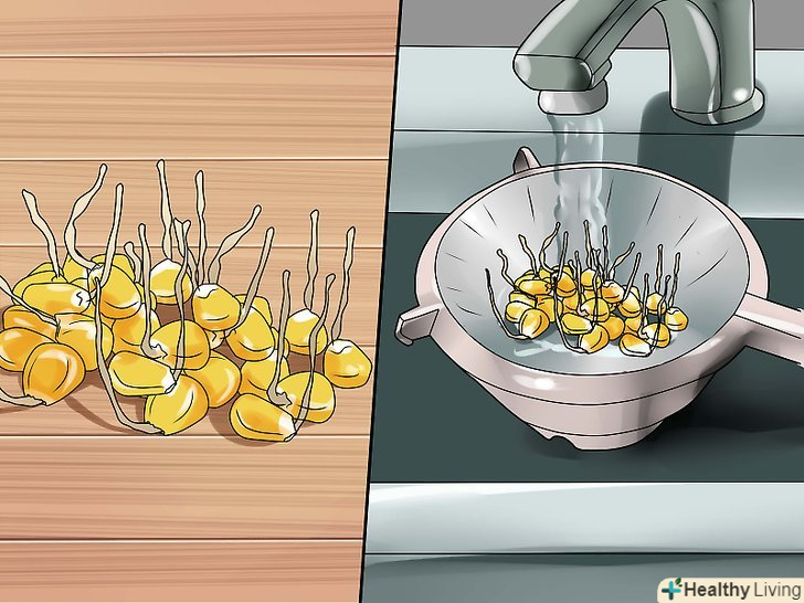 Покладіть мішок в темне і тепле місце.вам потрібно тримати зерно у волозі приблизно протягом 10 днів. Перевірте вашу кукурудзу для розсади. Коли паростки будуть розміром приблизно 6 міліметрів, тоді Кукурудза готова для наступного кроку в рецепті.[2]