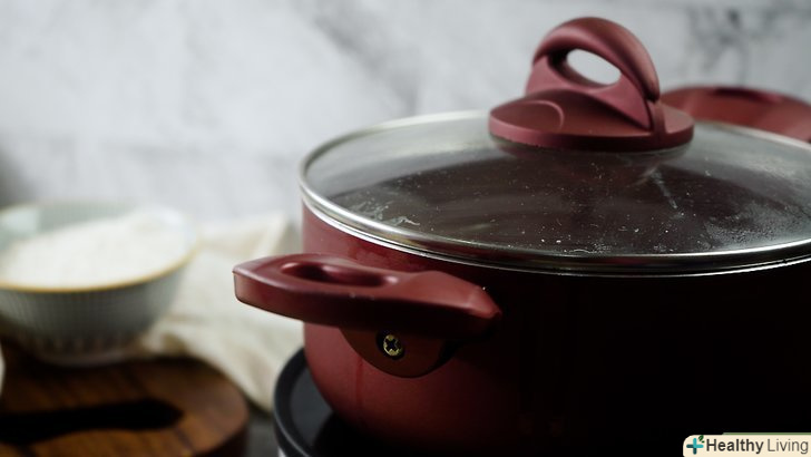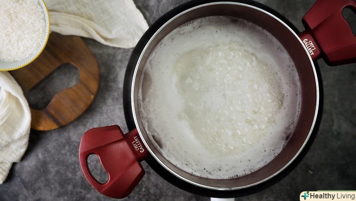 Залийте в досить велику каструлю 2 склянки (450 мілілітрів) води і доведіть її до кипіння.- Додайте 1½ склянки (300 грамів) короткозерного або 1 стакан (200 грамів) середньозерного рису.для кращого результату постарайтеся використовувати короткозерний рис.[9] Короткозерний рис містить більше крохмалю, ніж середньо - і довгозерні сорти,що надає йому більшу клейкість.