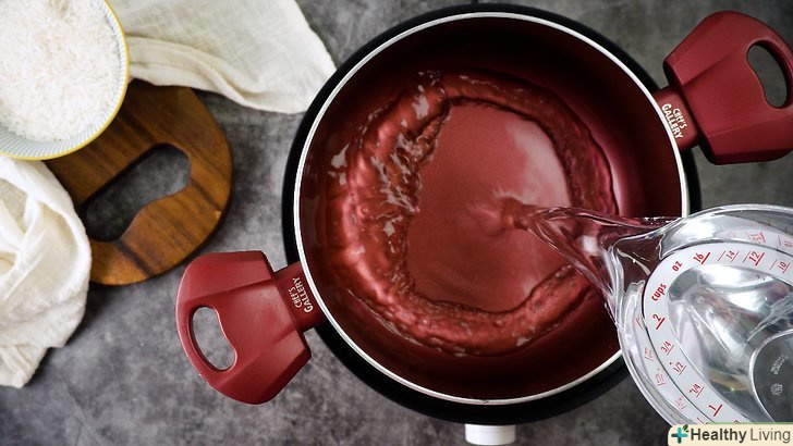 Залийте в досить велику каструлю 2 склянки (450 мілілітрів) води і додайте ще кілька столових ложок води.додаткова вода зробить рис більш клейким і грудкуватим.[6]- Подумайте про те, щоб додати в воду щіпку солі. Це поліпшить смак рису.