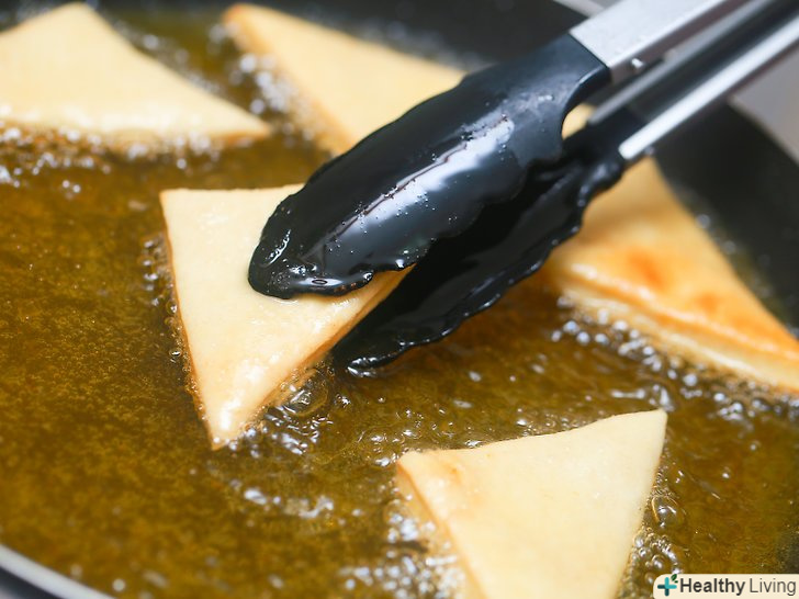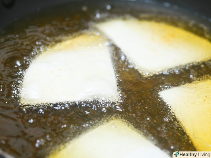 Розігрійте масло.наповніть сковороду достатньою кількістю рослинного масла, щоб сопапільі повністю вкрилися. Масло має розігрітися до 200º с.