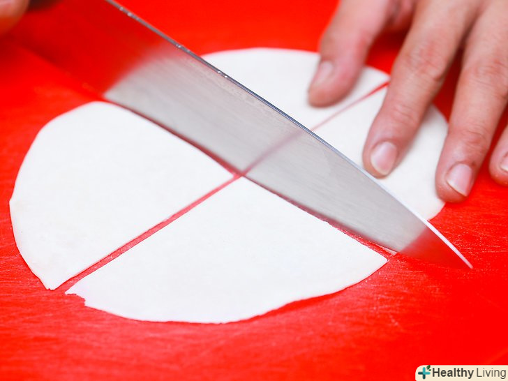 Розріжте тісто на трикутники.розрізати тортилью подібно пирогу-найпростіший спосіб це зробити. Трикутники вийдуть із закругленою стороною.