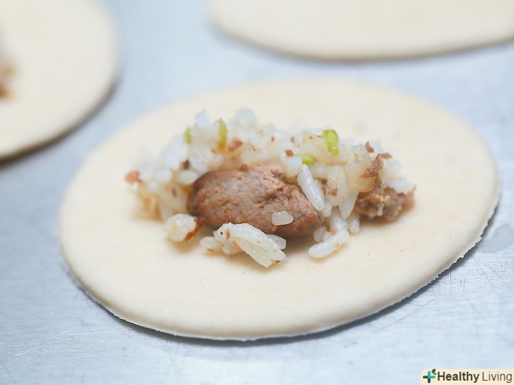 Покладіть в центр кожного гуртка 2 ст. л. начинки.для сопапільі можна використовувати практично будь-яку начинку. Для солоних сопапільі додайте в тісто рис, боби і м'ясо. Для солодких можна використовувати начинку для пирога або шоколадну стружку.