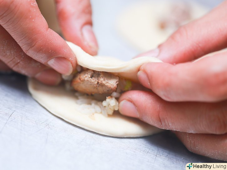 Складіть тісто навпіл, формуючи півколо.ретельно закрийте начинку тестом, потім щільно притисніть краю. Дуже важливо добре притиснути краю, щоб масло не потрапило в середину.
