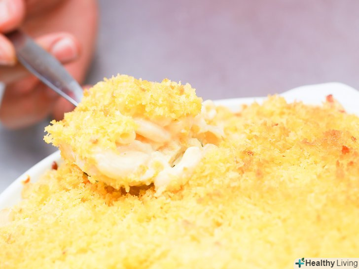 Приготуйте макарони з сиром.додайте в готовий соус бешамель кілька склянок сиру чеддер, збиваючи, поки він не розплавиться. Полийте соусом макарони, а потім перекладіть у форму для запікання. Посипте тертим сиром і запікайте в духовці, поки страва не покриється рум'яною скоринкою і не почне пузиритися.