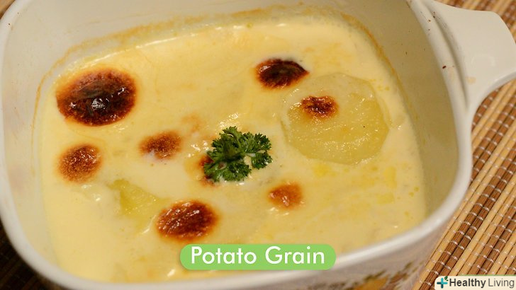 Приготуйте картопляну запіканку.викладіть у форму для запікання тонко нарізану картоплю і нарізану зелену цибулю і полийте соусом бешамель. Посипте тертим сиром пармезан. Запікайте в духовці, поки картопля не стане хрусткою, а соус і сир не почнуть пузиритися.