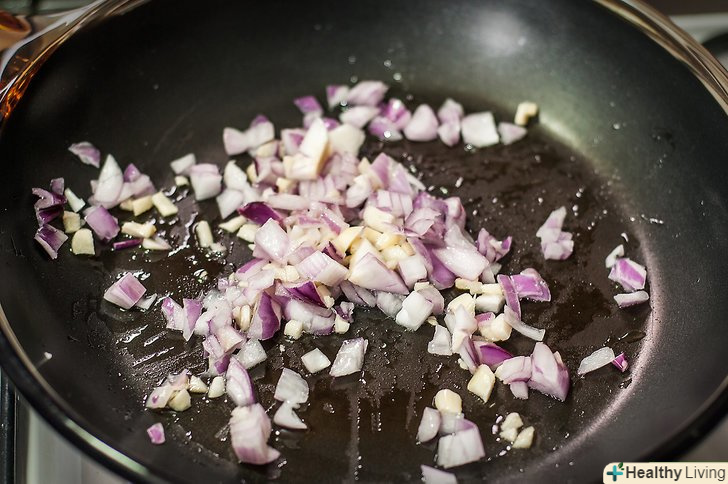 Поки варяться макарони, розігрійте в сковороді олію.покладіть нарізану цибулю і часник, добре перемішайте і підсмажте до золотистого кольору.