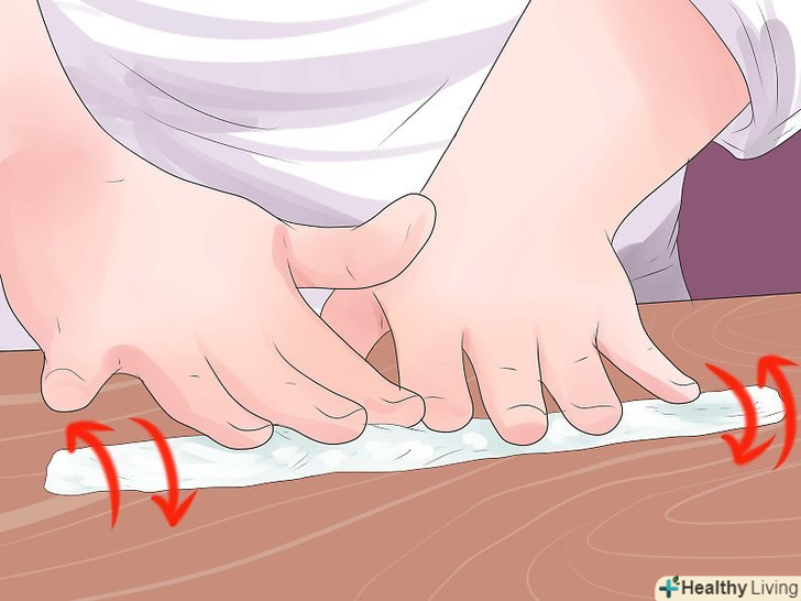 Розкачайте тісто.покладіть тісто перед собою і розкачайте його руками в довгу, тонку мотузку. Постарайтеся, щоб мотузка вийшла рівномірної товщини. Розріжте мотузку на невеликі шматочки (на один укус) ножем.- При бажанні ви можете розкачати тісто качалкою і розрізати його на квадрати.