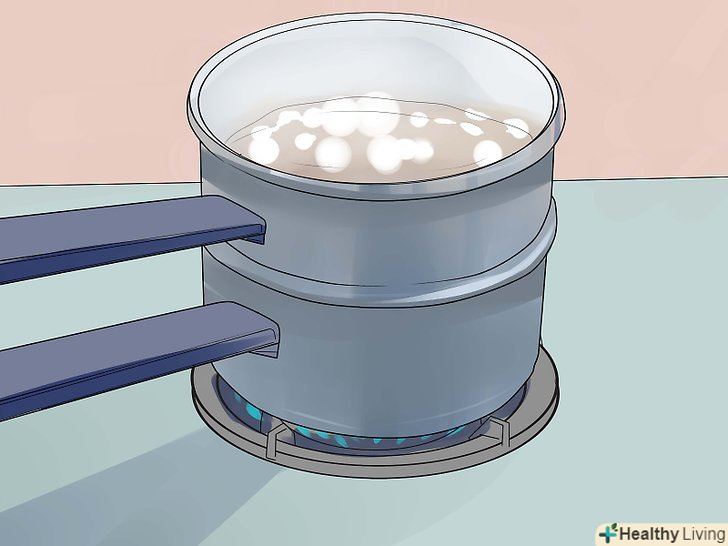 - Якщо у вас немає пароварки, зробіть її з двох каструль (маленької і великої). Заповніть велику каструлю кількома сантиметрами води і поставте на плиту. Встановіть всередині меншу каструлю так, щоб вона плавала на поверхні води. Покладіть інгредієнти в меншу каструлю і включіть вогонь.