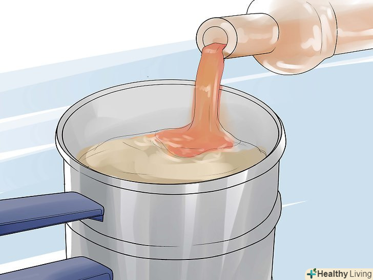 Нагрійте інгредієнти.покладіть основу жувальної гумки, кукурудзяний сироп, гліцерин, лимонну кислоту і ароматизатор у верхню частину пароварки. Поставте пароварку на плиту і включіть середньовисокий вогонь. Нагрійте суміш, поки вона не стане теплою і клейкою. Ретельно перемішайте її ложкою.- Ви можете купити основу для жувальної гумки, гліцерин і лимонну кислоту в кондитерському магазині або по інтернету. Вибирайте класичний аромат або що-небудь унікальне, наприклад, лайм.