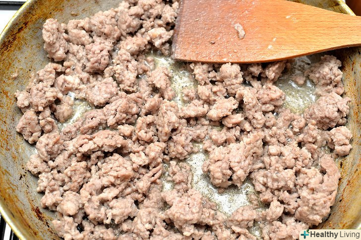 Приготуйте м'ясну суміш:- Підсмажте і злийте рідину з м'ясного фаршу.
