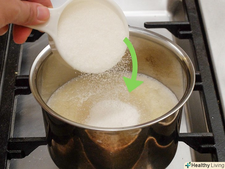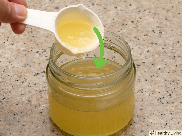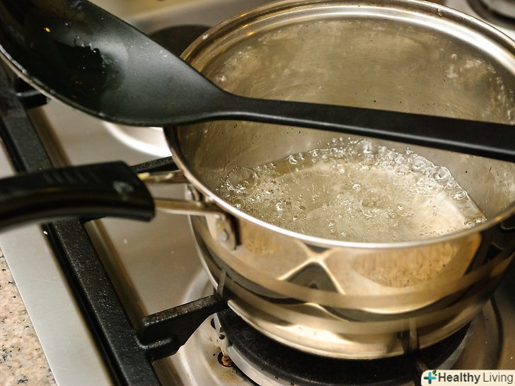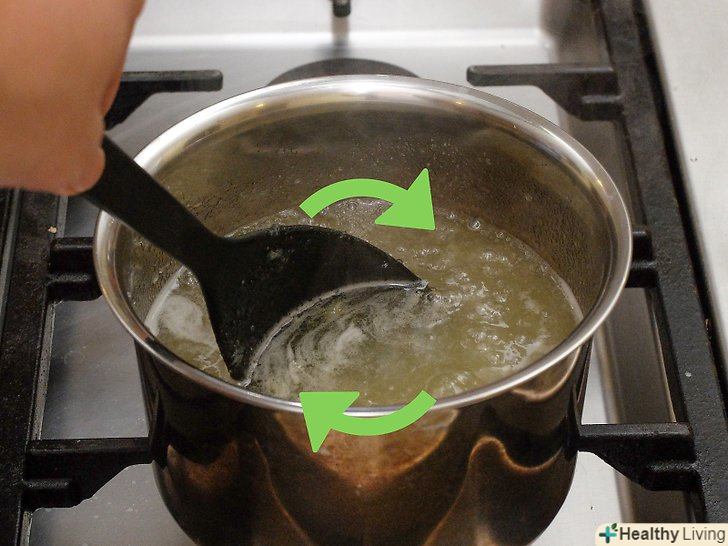 Змішайте в каструлі пектин з водою і доведіть розчин до кипіння.візьміть невелику каструльку, висипте в неї один пакетик пектину і вилийте 1 склянку (240 мл) води, після чого доведіть розчин до кипіння на середньому вогні. Кип'ятіть протягом хвилини, після чого зніміть каструлю з плити.[5]- Пектин-це фруктовий екстракт, який допомагає згустити джеми і желе.