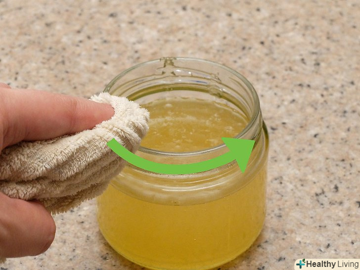 Протріть ободок банок.оскільки джем дуже липкий, якщо він прилипне до обідка, банку буде важко відкрити. Перш ніж закрити банки, візьміть чистий рушник і протріть обідки банок, щоб прибрати з них джем.[13]