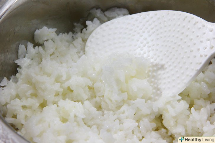 Промийте рис.перекладіть 1 склянку (200 г) рису в миску і залийте холодною водою. Рукою розмішайте рис, а потім перелийте рис в друшляк, щоб злити зайву воду. Перекладіть рис назад в миску і знову залийте водою. Перемішуйте і зливайте воду до тих пір, поки вона не стане прозорою. Так ви видалите надлишки крохмалю, і рисові зернятка не злипнуться при готуванні.[1]- Можна використовувати будь-який вид рису: басматі, рис для суші, коричневий або довгозерний.