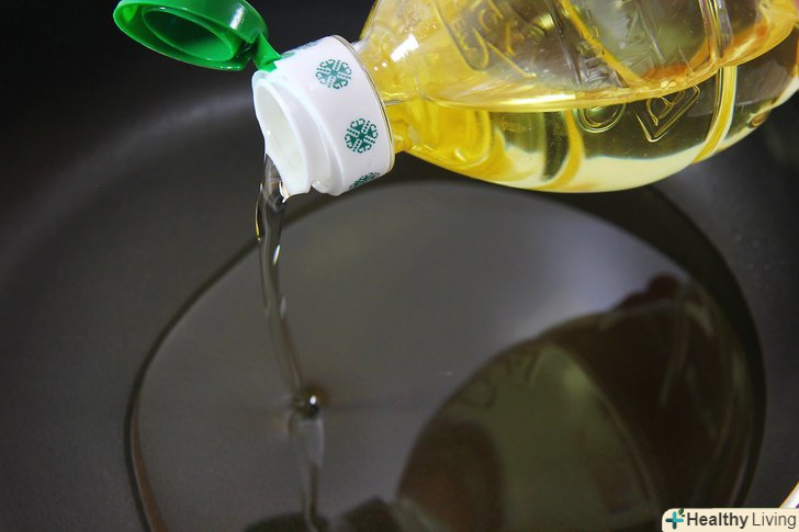 Налийте в каструлю масло і розігрійте його до температури 190 °C. Налийте достатню кількість рослинного масла, щоб каструля була заповнена на 5 см і поставте її на вогонь. На даному етапі вам знадобиться кухонний термометр, так як вам необхідно розігріти масло до 190 °C.[5]- Дуже важливо використовувати масло з високою температурою димлення, саме тому ні в якому разі не використовуйте нерафіновану оливкову олію