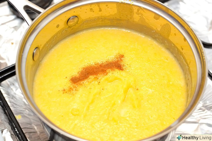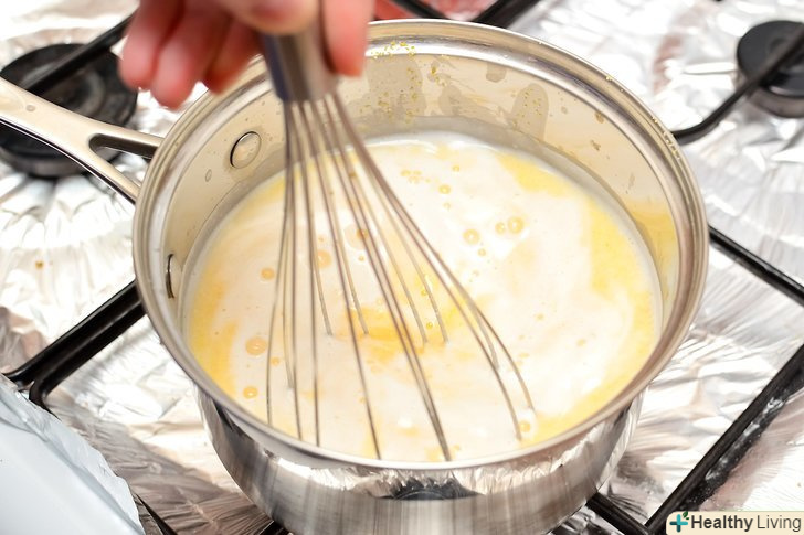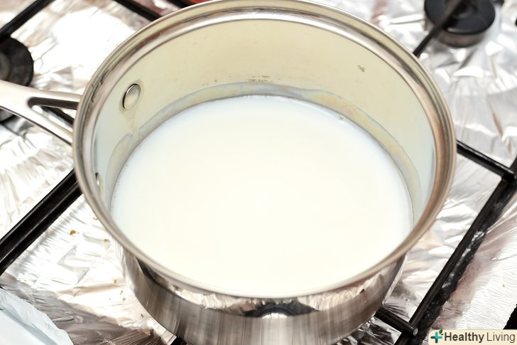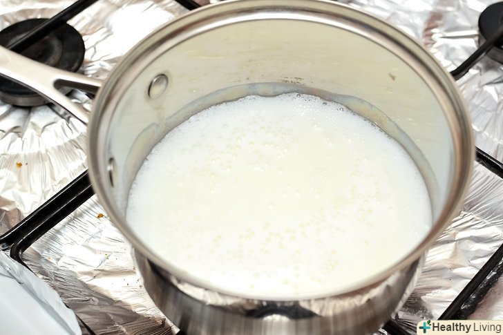Змішайте 1 склянку (236 мг) молока і 3 склянки (709 мг) води в каструльці і грійте на середньому вогні.