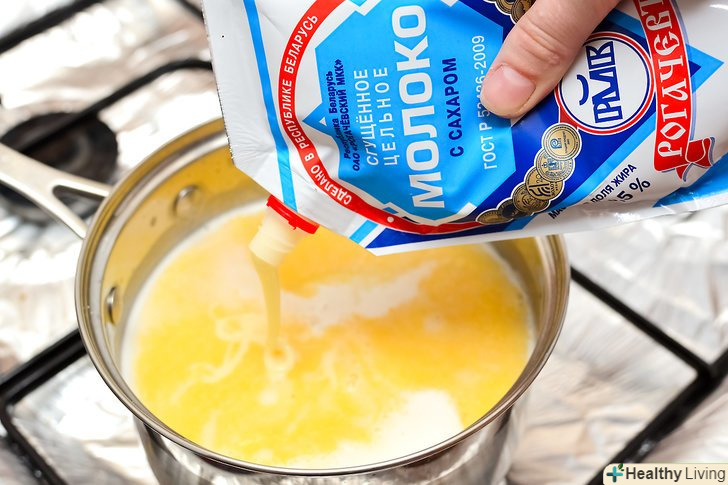 Додайте в каструльку ½ склянки (118 мг) згущеного молока.