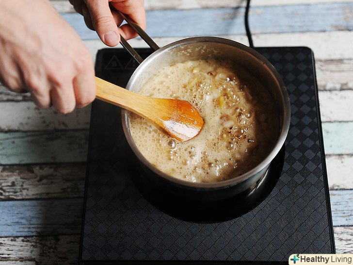 Доведіть до кипіння.безперервно помішуйте суміш великою ложкою до тих пір, поки вона не закипить і цукор не починає карамелізовуватися. Постійно помішуйте суміш, поки вона не загусне, щоб цукор не прилип до дна і стінок каструлі. Використовуйте цукерковий термометр для перевірки бажаної температури-бажано, щоб вона досягла 145 градусів Цельсія.