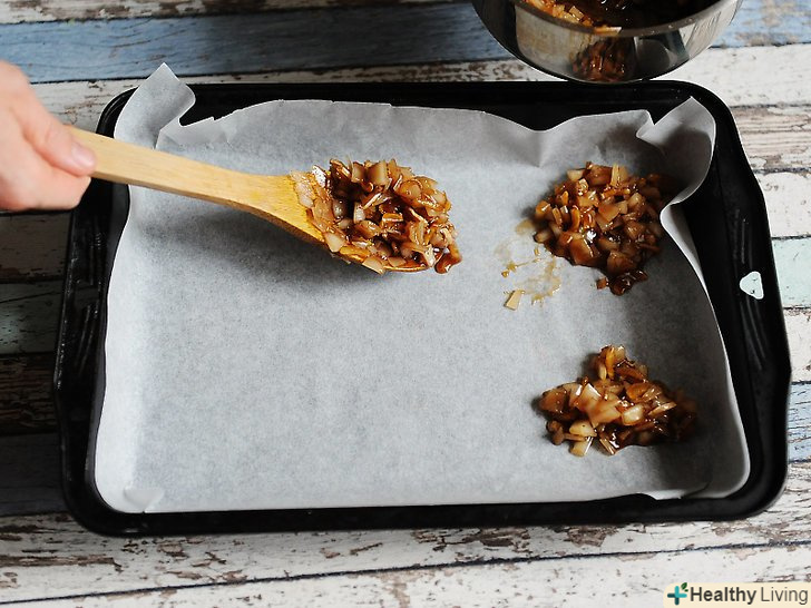 Викладіть суміш на деко.як тільки цукор гарненько карамелізується і суміш стане складно заважати, зробіть слабкий вогонь. Швидко сформуйте ложкою краплі суміші на деку, застеленому вощеним папером, використовуючи приблизно дві столові ложки суміші на одну кокосову краплю. Перед вживанням дайте краплям охолонути і затвердіти.