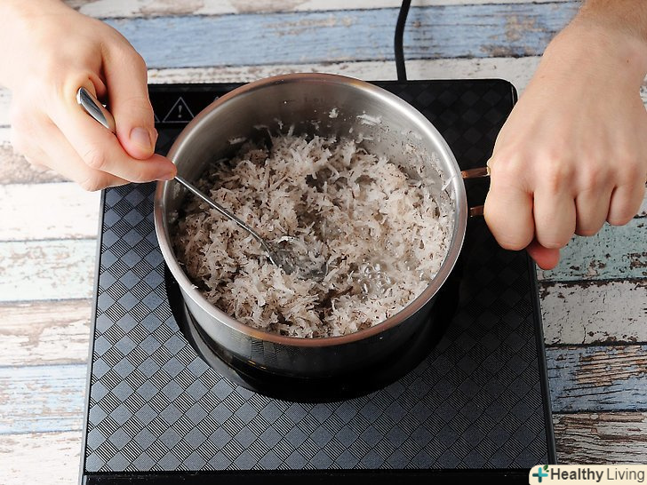 Підготуйте кокос.використовуйте викрутку, щоб пробити дірки в «очках» горіха і злити кокосову воду, нахиливши його в сторону.- Використовуйте молоток, щоб розкрити кокосовий горіх, а потім візьміть ніж для масла, щоб відокремити м'якоть від шкірки. Натріть м'якоть кокоса довгими тонкими смужками на тертці. Переконайтеся, що леза розташовані уздовж волокон м'якоті, а не поперек.