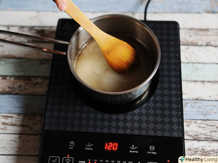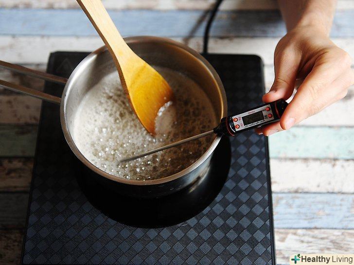 Доведіть вміст каструлі до кипіння.використовуйте цукерковий термометр для перевірки температури суміші – вона повинна розігрітися до 60 градусів Цельсія.