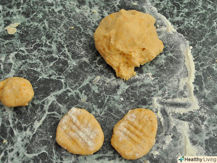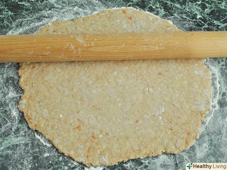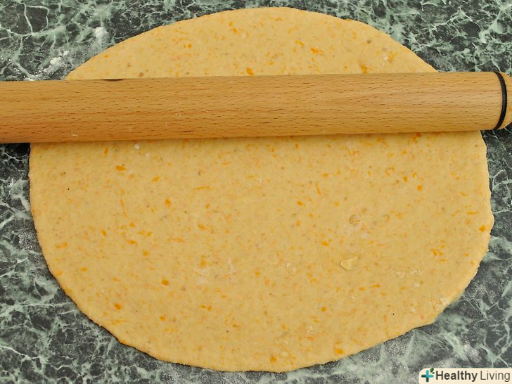 Розкачайте тісто качалкою.вам необхідно отримати пласт тіста товщиною близько 5 мм.якщо у вас немає качалки, скористайтеся замість неї скляною пляшкою, наприклад, від вина. Якщо необхідно, попередньо посипте качалку борошном.