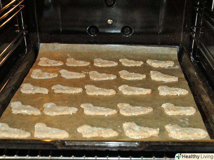 Випікайте печиво 20-25 хвилин.коли краї печива стануть золотисто-коричневими, вийміть його з духовки. Поставте деко на решітку для охолодження і дайте печінкою охолонути, перш ніж давати його собаці.