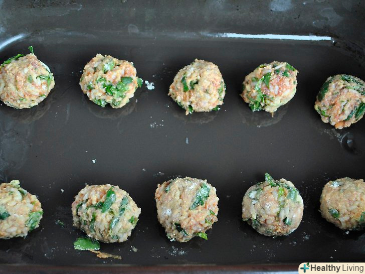 Скачайте з фаршу кульки.для великої собаки поділіть весь обсяг фаршу приблизно на 10 фрикадельок. Для маленької собаки можна приготувати близько 15 фрикадельок меншого розміру. Формуйте кульки руками і викладайте їх на деко.
