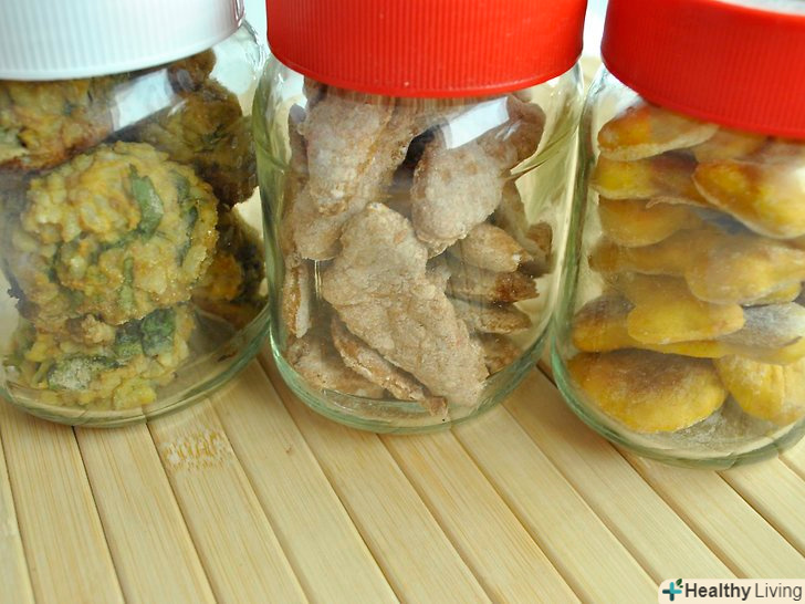 Для збільшення терміну придатності Зберігайте ласощі в холодильнику.холодильник дозволить довше зберегти ласощі для вихованця. При цьому все, що містить в собі м'ясо і м'ясний соус або молочні продукти, обов'язково слід зберігати в холодильнику. При зберіганні в герметичних контейнерах ласощі можна тримати в холодильнику аж до двох місяців.[8]