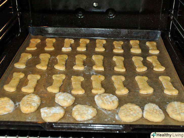 Випікайте печиво протягом 35 хвилин.коли печиво стане золотисто-коричневим, вийміть його з духовки. Дайте деку охолонути на решітці, перш ніж пригощати печивом собаку.