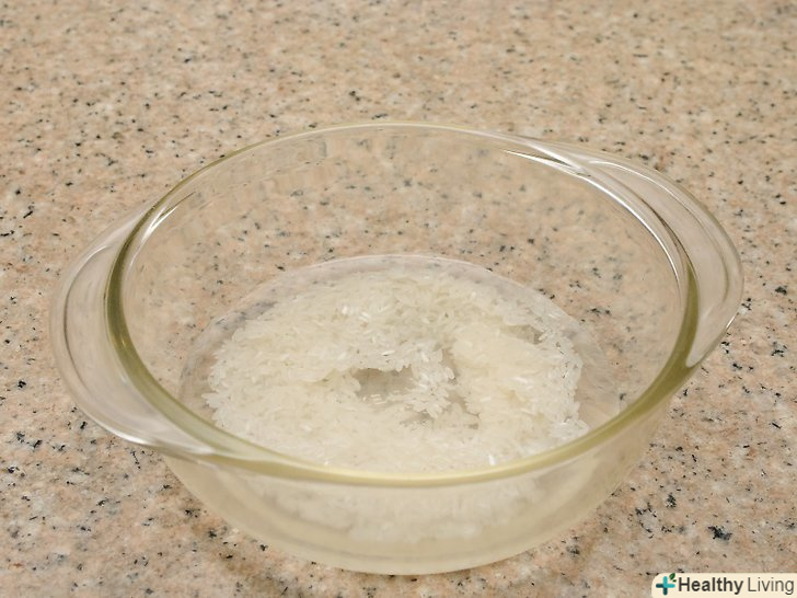 Замочіть рис (необов'язково).деякі люди вважають за краще замочувати рис заздалегідь, щоб скоротити час приготування і поліпшити текстуру, але ви можете пропустити цей крок і без цього досягти відмінного результату.- Використовуйте за обсягом в два рази більше води, ніж рису і замочіть на 20 хвилин. Злийте воду після цього.