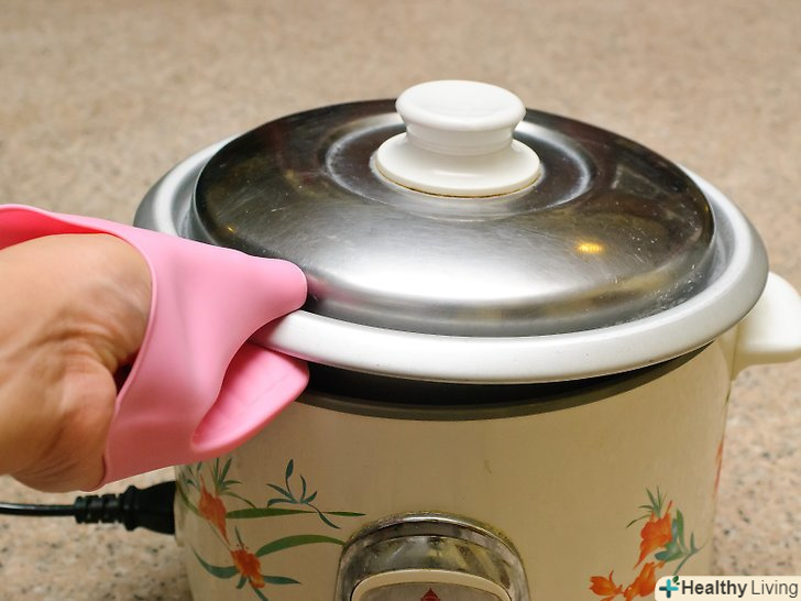 - Використовуйте кухонний рушник або рукавицю для духовки при поводженні з кришкою, що закриває ємність з киплячим рисом. Вона буде дуже гаряча.