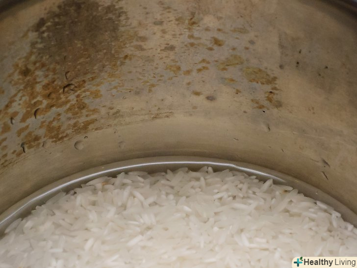 Рис згорів!залийте холодною водою зовнішню сторону каструлі (будьте готові до парових хмар), щоб зупинити варіння рису. Заберіть хороший рис з центру.