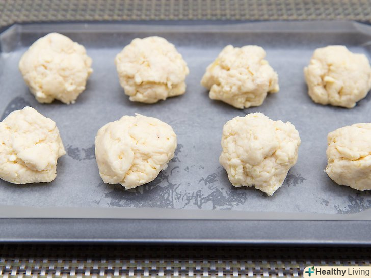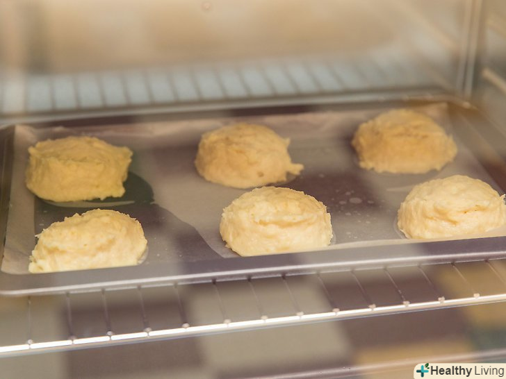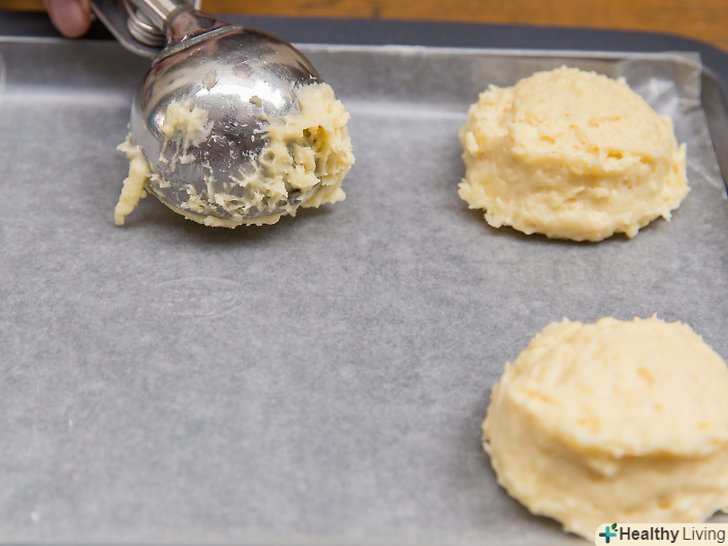 Покладіть тісто на незмазаний жиром деко.викладіть на чисте деко тісто порціями по 1/4 склянки. Ви можете використовувати для цього велику ложку або совок для морозива.