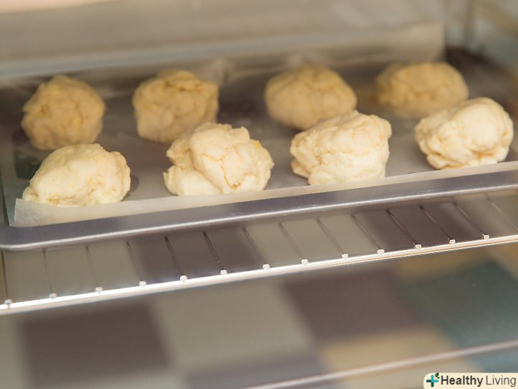 Викладіть тісто на деко.використовуйте змащений жиром мірний стакан (1/4 склянки), щоб рівномірно викласти тісто на деко. Залиште між печивом відстань не менше 2,5 см.