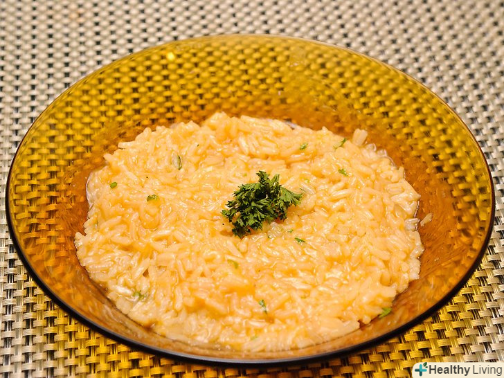 Подавайте.Подавайте різотто в широких, неглибоких тарілках, прикрасивши зверху тертим сиром пармезан.