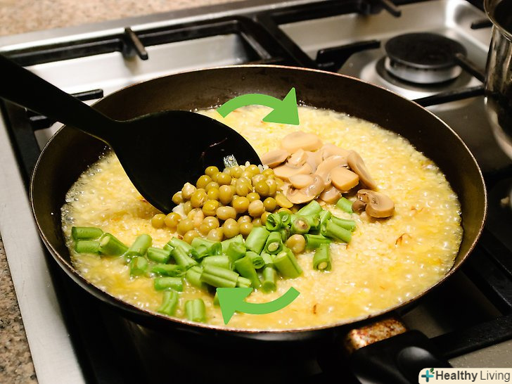 Зробіть вегетаріанське різотто.у це різотто додаються різні овочі, наприклад, кабачки, горох і гарбуз.