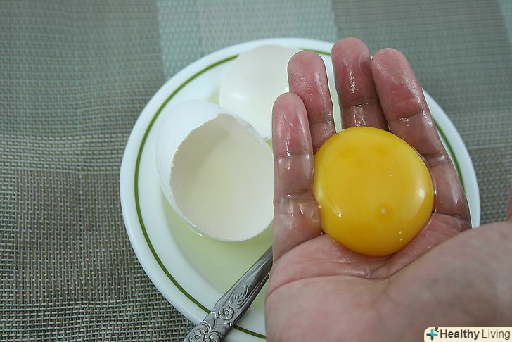 Відокремте білки від жовтків.З'єднайте пальці у вигляді чашечки над маленькою мискою. Розбийте яйце в руку і дайте білку стекти крізь пальці в миску. Що залишився жовток перекладіть в іншу миску і відкладіть.