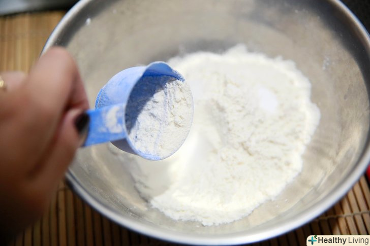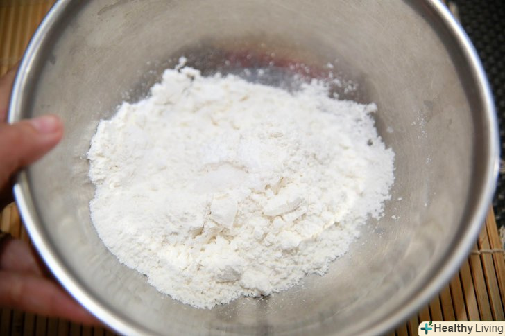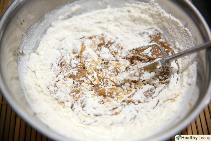 Перемішайте всі сухі інгредієнти.ретельно змішайте борошно, харчову соду і сіль в невеликій мисці. У цьому рецепті використовується трохи більшу кількість борошна, ніж в інших рецептах, так як борошно збирає вологу, завдяки якій печиво виходить тягучим.[14]